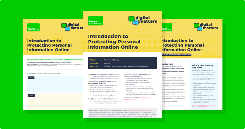 Create your free Digital Matters account to gain access to full lesson packs across 8 topic areas all year round. Your full lesson pack includes all of the resources above, plus: